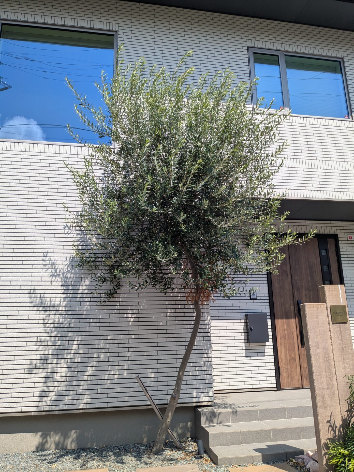 新築時に植えられたオリーブが予想以上に大きくなってしまったということで伐採のご依頼でした。